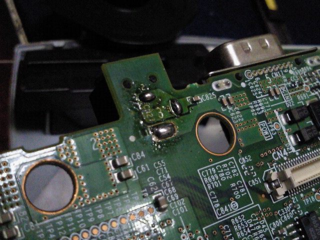 案の定、ジャックの3本ある端子のうち、2本が半田割れし外れていました。