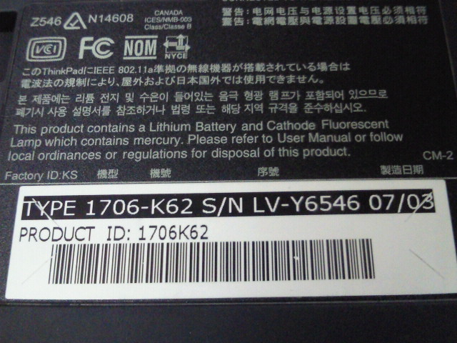 Think Pad 1706-K62 ジャンク出品 no.2