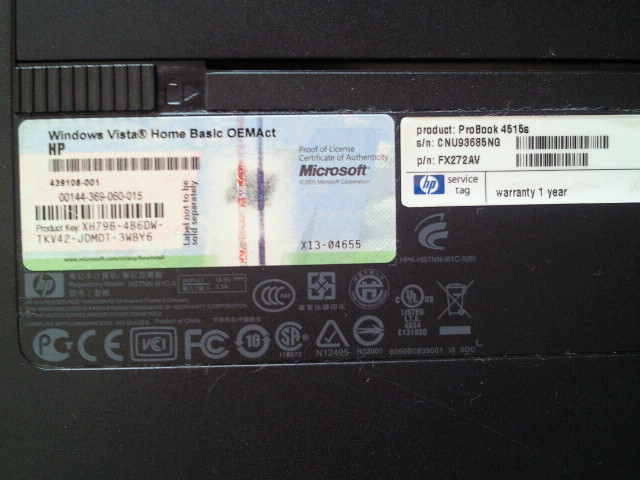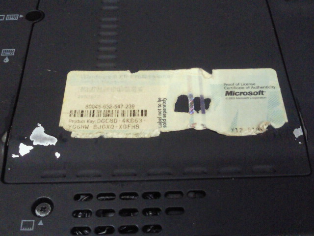 シールがすれて消えてしまっています。裏面のプロダクトキーのシールが破れて
