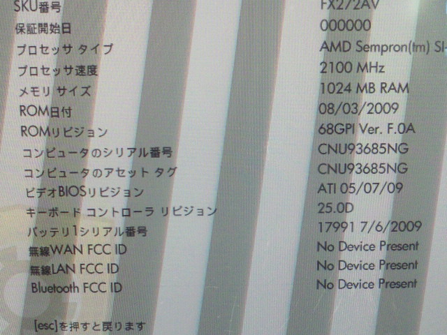運良くか、悪くか、某オークションで同型の液晶ライン抜け、BIOS起動確認、