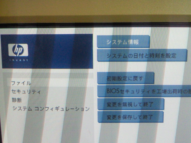 外部モニタでインフォメーション、BIOS画面の確認。