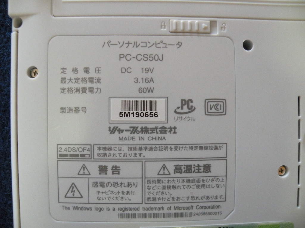 ★☆SHARP PC-CS50J  起動しないジャンク☆★