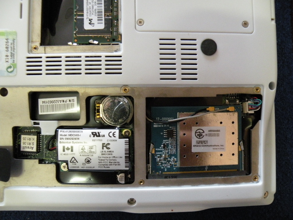 メモリは1GB1枚実装。 無線LANはありません。アンテナケーブルはあります。