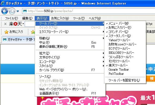 インストールしてあるツールバーがわかる。