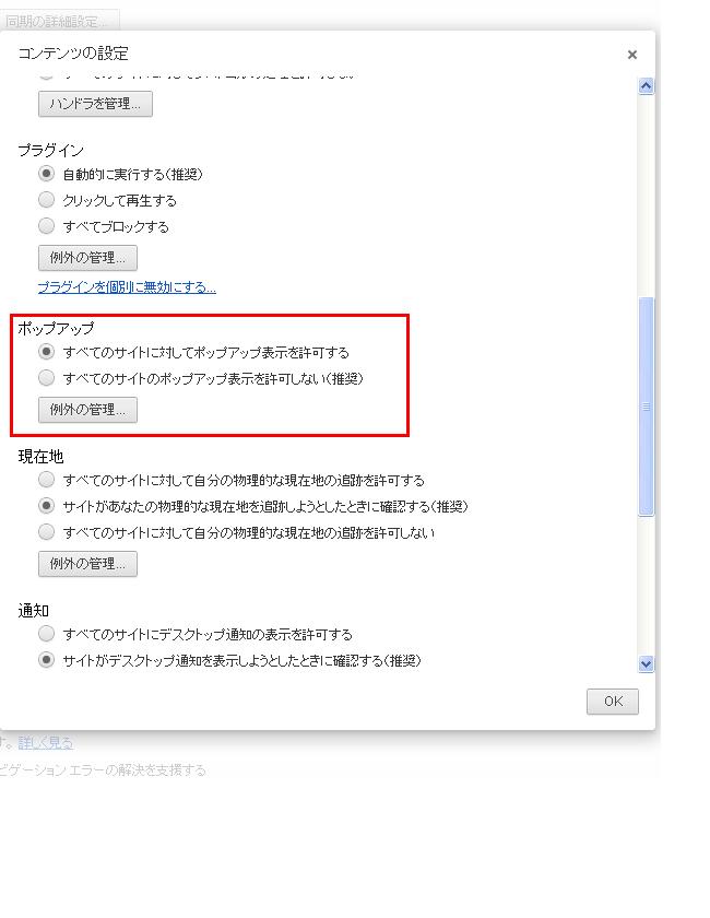 ポップアップは初期状態ではブロックするようになっているので、