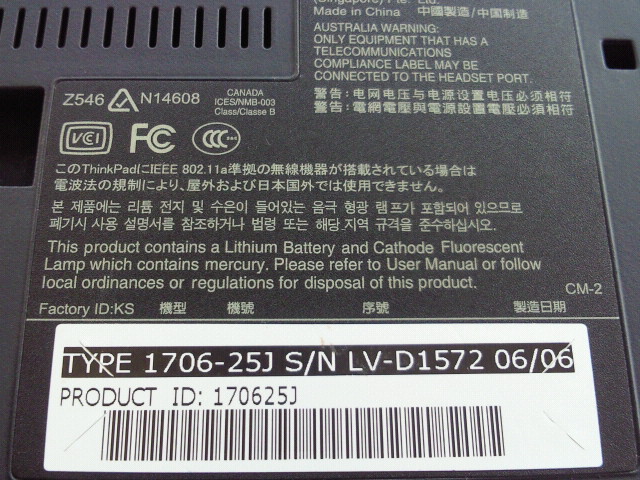 ThinkPad 1706-25J ジャンク出品 no.1
